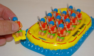 In the box: 1 plastic raft, 12 plastic paddlers, 1 pamphlet with challenges