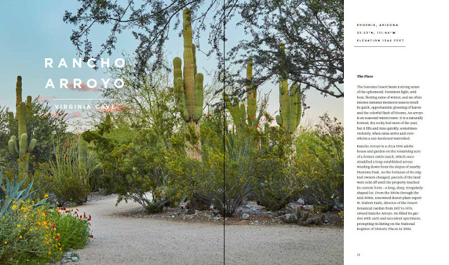 Jennifer Jewell's writing of each garden profile is spot on perfection, as a devotee of her podcast, Cultivating Place, I could sometimes hear her voice as I read the text. Each featured garden is treated in the same manner: first she writes about The Place, then The People and finally The Plants. When writing about "Rancho Arroyo/Virginia Cave—Phoenix, AZ"—a garden featured early in the book—Jennifer quotes Virginia: "Water—a symbol of money in Phoenix—and time are resources you have to be willing to choose to dedicate to cultivating a garden. Not everyone can, and everyone is willing to make this choice even if they can, Some people lose themselves in books, cooking, or jigsaw puzzles. I love to lose myself in listing to the lovebirds roosting in the arroyo or in deadheading my winter pansies."
