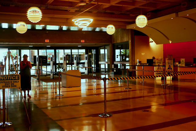 Arriving we realized that Bruce had forgotten his required mask, so I turned the books in and waited for his return. The lobby looks like this.