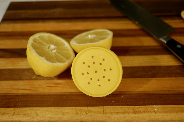 I'll tell you what day it is....your lucky day. Why so, you ask? At Marshalls one day I came across a lemon squeezer from OXO that looked interesting. Over the years I've purchased many a squeezer that seemed promising, but ultimately fell short of my expectations. While this one is not perfect, it's the very best I've tried. Unless you have a huge lemon, it is perfect.