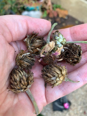 I started collected the seeds from the Zinnias and other cutting garden flowers as I pull them out.