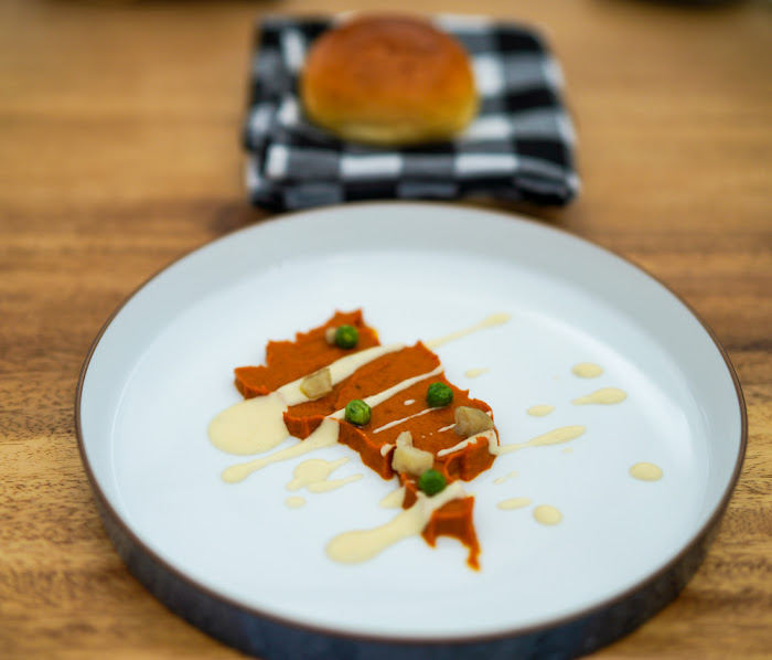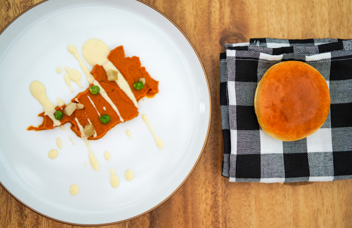 Also striking is the Scarpeta, Italian for sopping sauce with bread. This harks to India ingeniously, mirroring Maharashtra's pav bhaji, a thick vegetable curry typically rounded out with a soft bread roll. What FLOUR crafts is a mash of American russet potatoes, capsicum and cauliflowers, shaped into a map of Mumbai, scattered with peas and Jerusalem artichoke, drizzled aromatically with aged gorgonzola, complete with a brioche bun, for eating with your fingers.