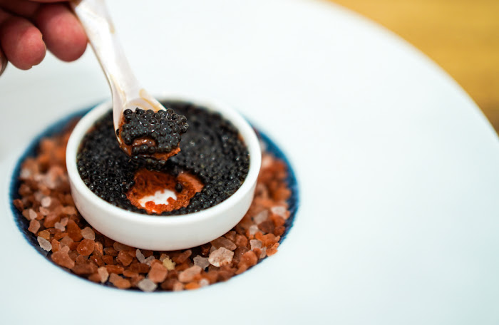 Yogi shuns the sea urchin, wagyu beef and truffles that too often epitomise the superficial extravagance of the city's tasting menus. But he's partial to caviar, with Earth & Sea as an optional add-on that's consistently on his menus. For this round, it's something extraordinarily special - 12 grams of arguably the finest Silver Baeri caviar, harvested from rare 24-year-old sturgeons (RM250). The 3.2-mm roe offers greater depth of flavour while maintaining a delicate texture, bringing us a bit closer to the Caspian Sea. 'Go slow, don't rush," Yogi reminds us before we take up our mother-of-pearl spoons to plough through the beetroot thorn below the roe.