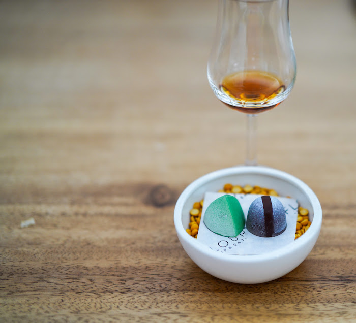 The carrot mille-feuille is a play on halwa, studded with creamy purees of the root vegetable and cardamom, separated for diners to dissect. The saga concludes with Hennessy-paired chocolate truffles that channel mint and fennel, with FLOUR's famed masala tea (or black coffee) to send us off.