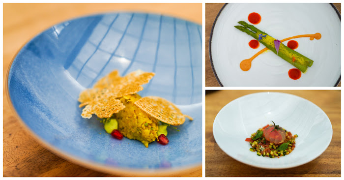 We're then whisked west to Gujarat for osaman, a traditional lentil broth, reinterpreted as the Lentil River, with a base of Indian green lentils boiled al dente and left to rest, slathered with fresh cream and showered with lentil soup - simple and sultry, potent in protein for pure, healthful nourishment.