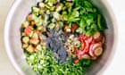 Asparagus also becomes less expensive if you eat the whole spear. To use it with minimal waste, check how fibrous the ends are by cutting a thin round off the very bottom and tasting because, so long as they’re sliced thinly enough, even the tough ends can be made palatable. By cutting the spear thinly across the grain, you are cutting the fibres into very short lengths that should be texturally fine to eat. If you have very old woody asparagus, however, and the thin rounds are indigestible, peel and compost the thick skin and cut the rest into 2-3mm-thick coins.