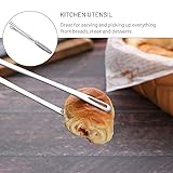 Kitchen tongs for the pro perfect for outdoor barbecue or grilling in the kitchen Works well for turning and lifting appetizer cheese fish crab chicken turkey burger asparagus vegetable salad ice block escargot pastry cake and taco No more spearing food with a fork and drying it out or accidentally dropping it on the floor Features for designintimately designed feet can lift the kitchen tongs During the cooking process you can put the kitchen tongs directly on the kitchen console with the help of feet the tongs will not stick to bacteria and will not be contaminated which effectively protects the health of contacting food the kitchen console is also very clean and will not be sticky oil stains make it easier to clean Is a good helper for your kitchen