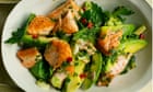 I picked up a salmon tail from the local fishmongers, grilled it and tossed the just-cooked flesh with cucumber, avocado and a fresh dressing of mint and lime. That fish is a rare treat in this house – you have to be fussy about its provenance – but early summer wouldn’t feel the same without a salad of pale pink and green on the table.