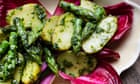 The new potatoes are here – tiny, kidney-shaped and with soft, flaky skins. Lightly scraped and steamed, their creamy yellow flesh has a sweet nuttiness that is the essence of early summer. I toss them, still warm from the steamer, in a vivid dressing of fresh herbs and olive oil with a kick of green chilli. The trick is to dress them lightly so you get the best of both dressing and potato. You can add other seasonal treats, too: asparagus tips, carefully steamed purple sprouting (tossed very gently as it is inclined to break up) and early samphire, whose saltiness will bring out the best in the new potatoes. (Seaweed is often used as fertiliser for the Jersey variety.)