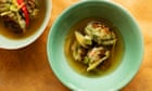 The bean soup was made with skinny leeks I had initially taken for spring onions, flageolet and broad beans and a cheap bunch of asparagus. I brightened things up with lemon zest, parsley and parmesan, and wrung a lemon into the hot, green stock.
