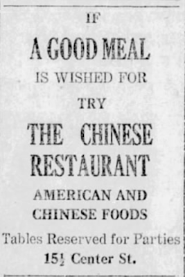 It's unclear what happened to the Oriental Restaurant after February 1923. The Rutland News, March 19, 1925, had an ad for The Chinese Restaurant, at 15 ½ Center Street, the former location of the Oriental Restaurant. Was the restaurant sold? Was just the name changed? Unfortunately, I wasn't able to find any additional information on the change. I'll note that this restaurant was still in operation at least up to 1944.