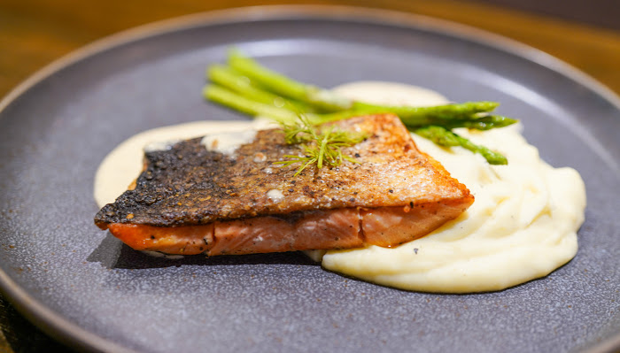 We have mixed sentiments about the salmon with truffled mash, sauteed asparagus and garlic lemon butter sauce (RM45) and the Australian wagyu MB4/5 beef with garlic confit, sea salt flakes, Sarawak pepper and mustard (RM135 for about 260 grams), since our cuts lacked succulence and were too heavily seasoned. Issues like those could nonetheless be easily fixed.
